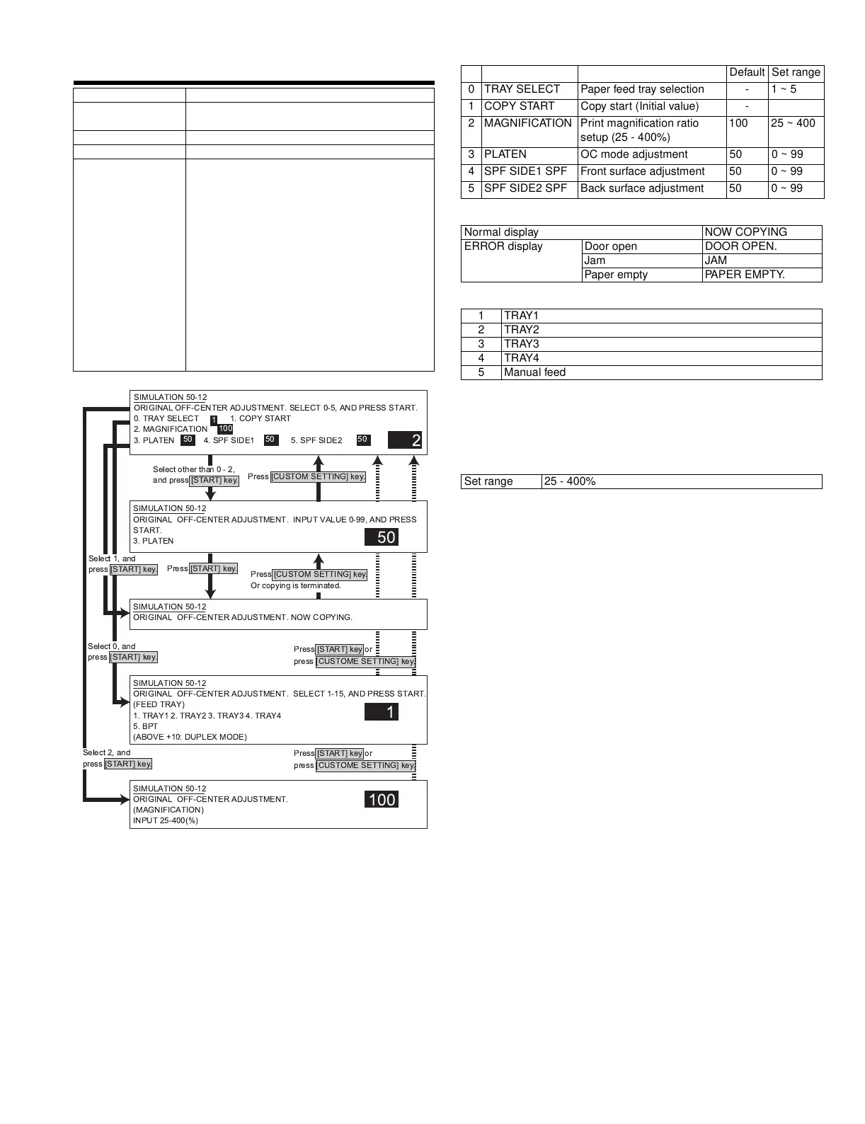 0 TRAY SELECT Paper feed tray selection - 1 ~ 5