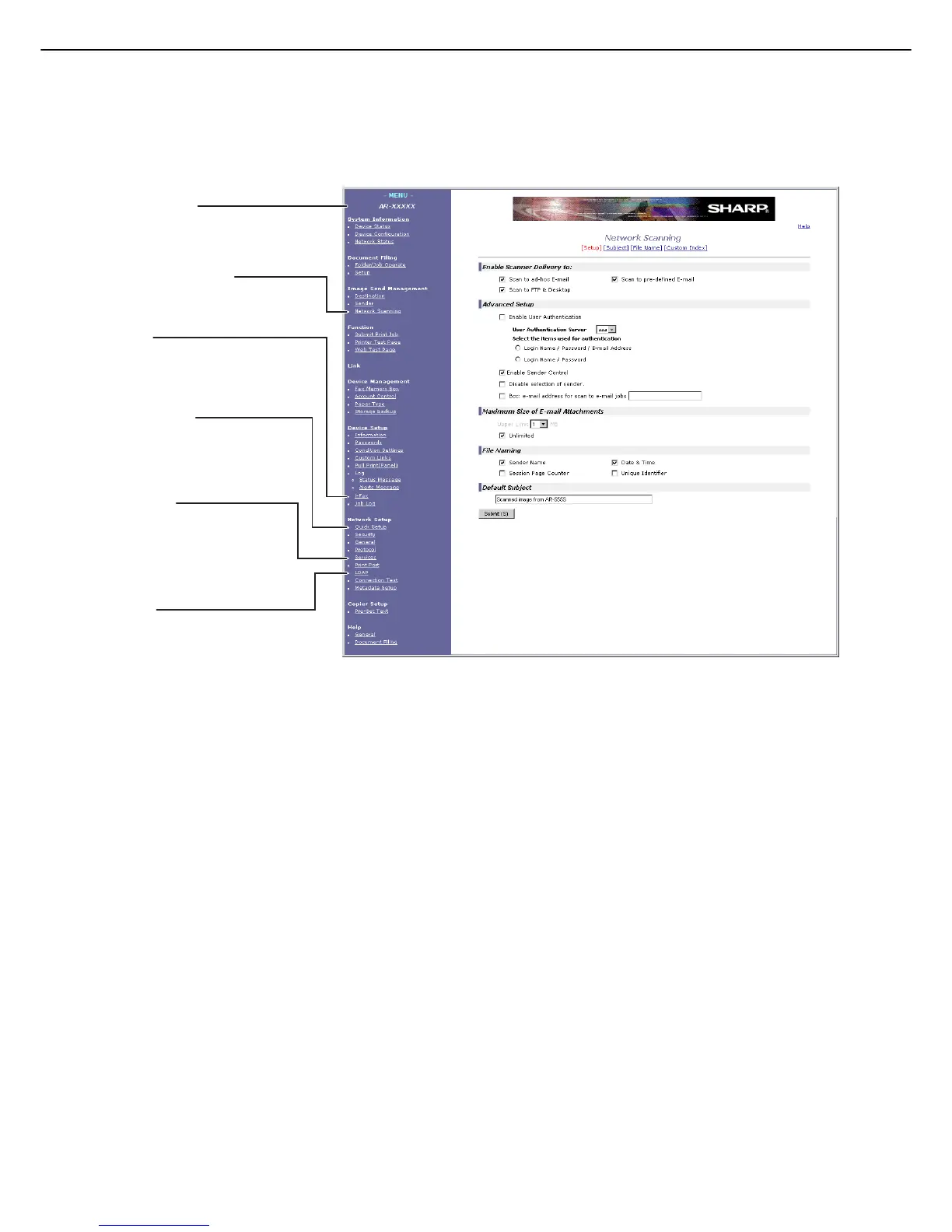 Click "Network Scanning" in the menu frame, and then establish the required settings. After entering the settings,