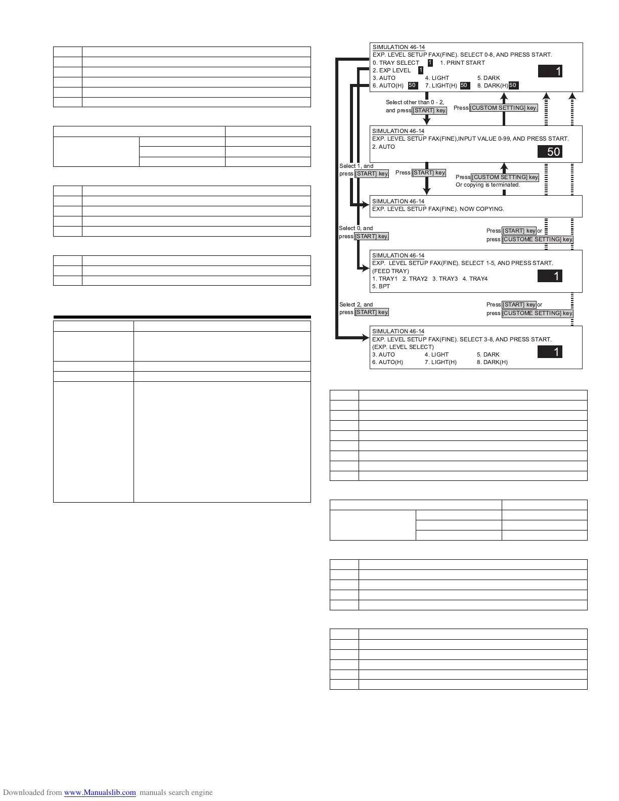 EXP. LEVEL SETUP FAX(FINE),INPUT VALUE 0-99, AND PRESS START.