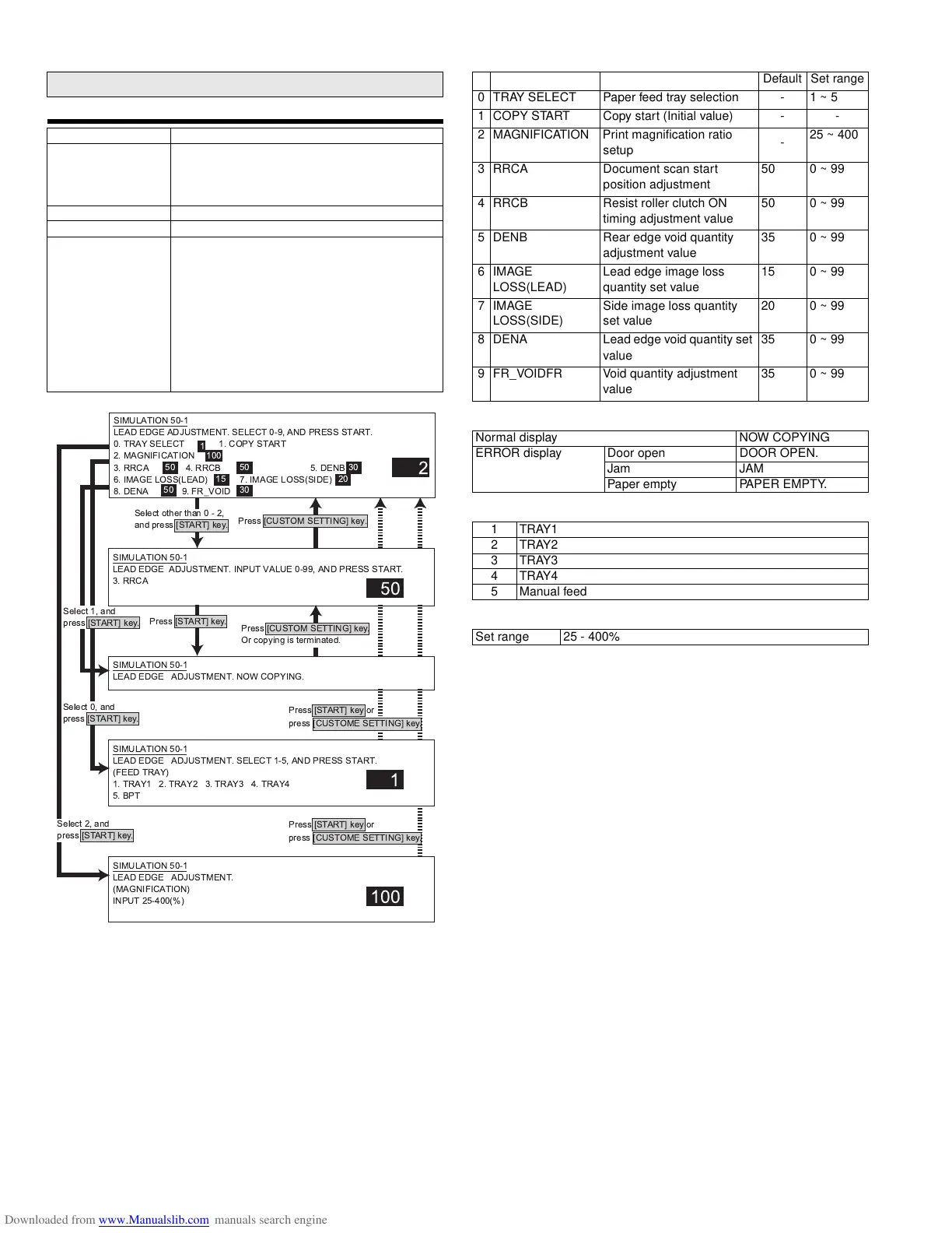 0 TRAY SELECT Paper feed tray selection - 1 ~ 5