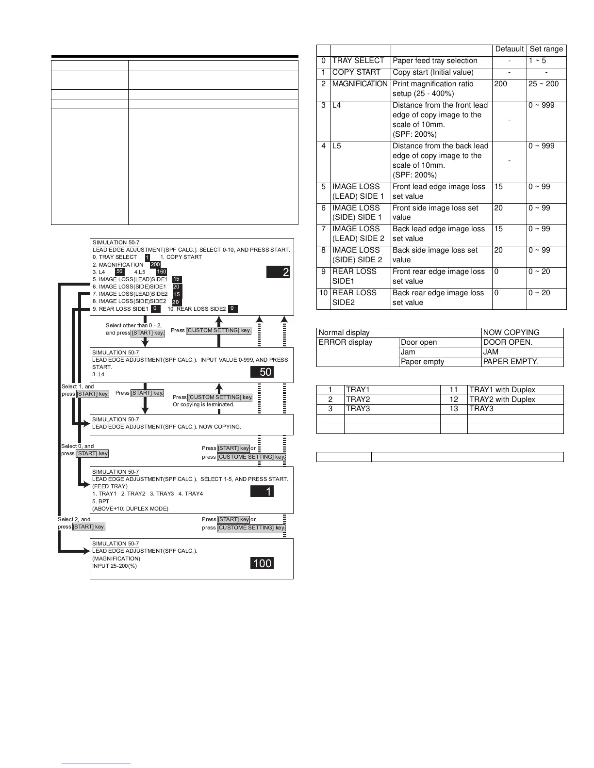 0 TRAY SELECT Paper feed tray selection - 1 ~ 5