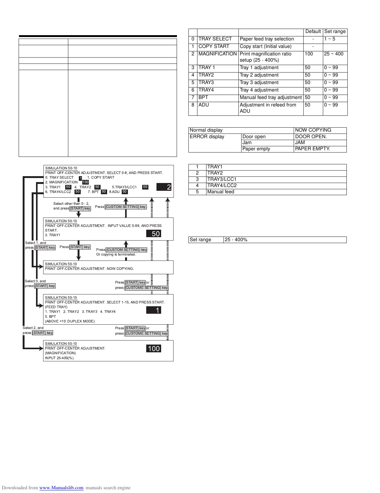 3 TRAY 1 Tray 1 adjustment 50 0 ~ 99
