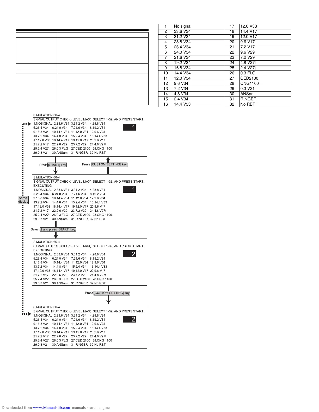 SIGNAL OUTPUT CHECK.(LEVEL MAX) SELECT 1-32, AND PRESS START.