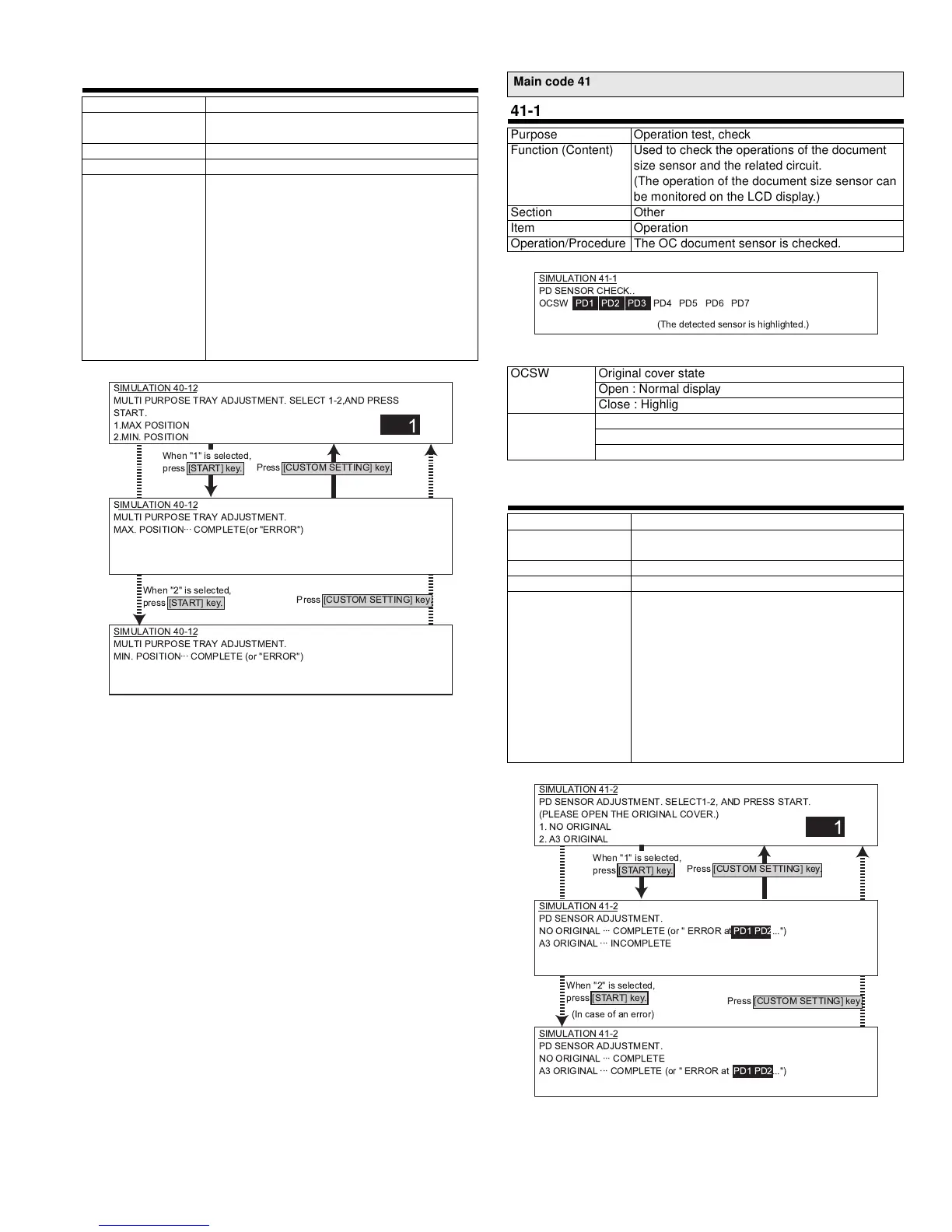 Operation/Procedure The OC document sensor is checked.