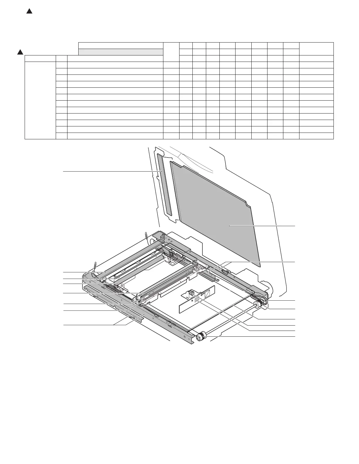 ✕: Check (Clean, replace, or adjust as necessary.) ❍:Clean ▲: Replace ∆: Adjust ✩: Lubricate ❏: Shift position