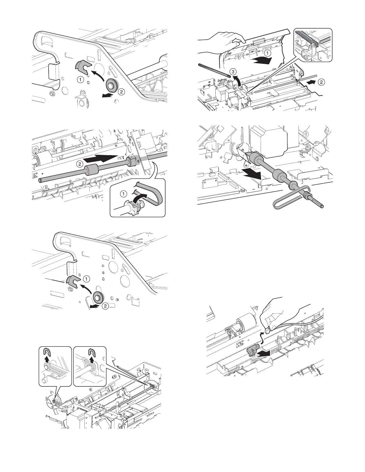 6) Remove the belt, and remove the transport roller 1 in the arrowed