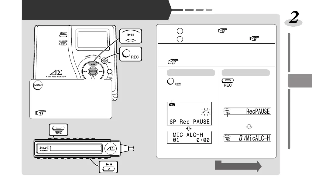 録音の一時停止状態になります。