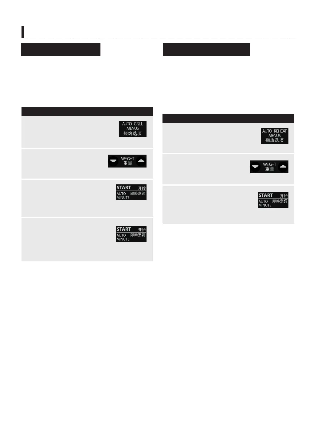 Press AUTO GRILL MENUS