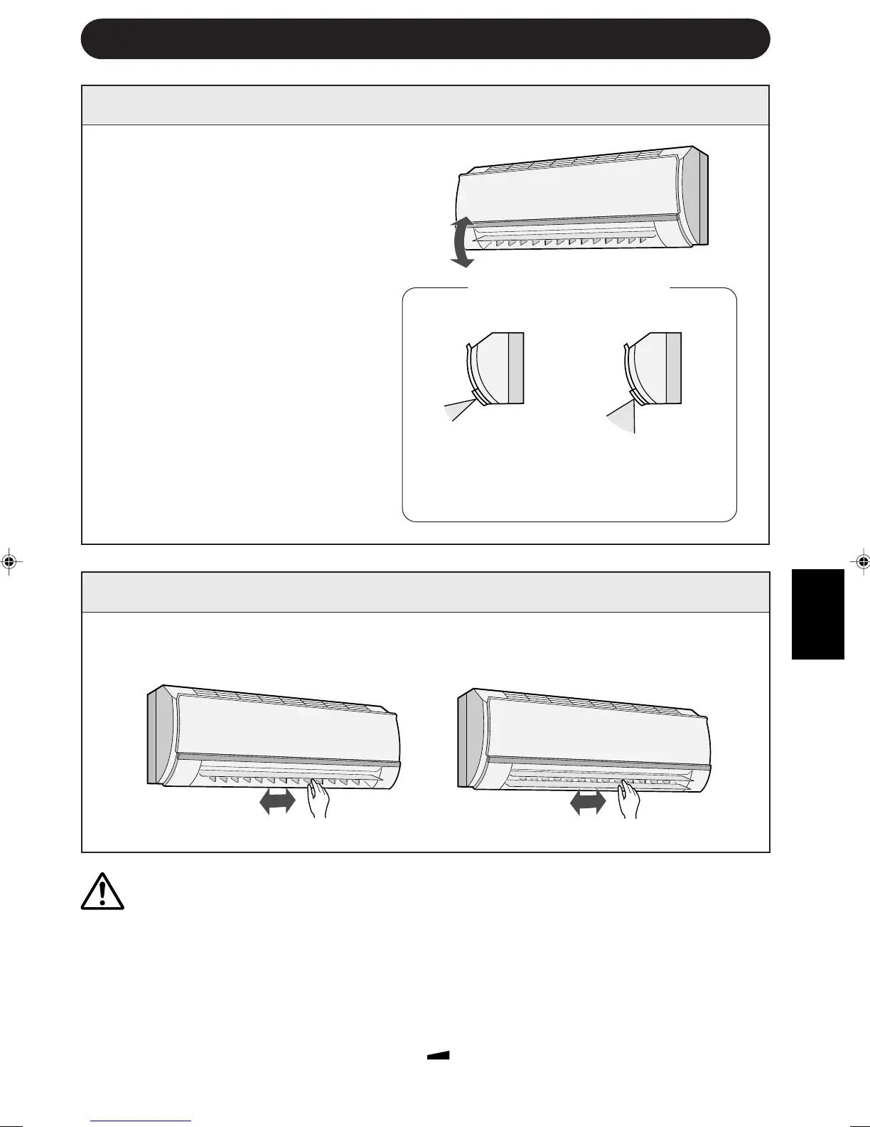 Segure nas palhetas de regulação horizontais como ilustrado e regule a direcção