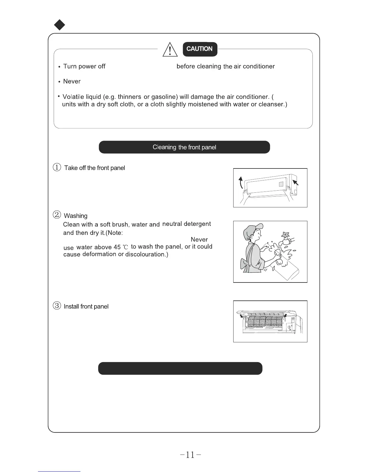 pour or spray liquids directly onto the indoor or outdoor units for cleaning, to