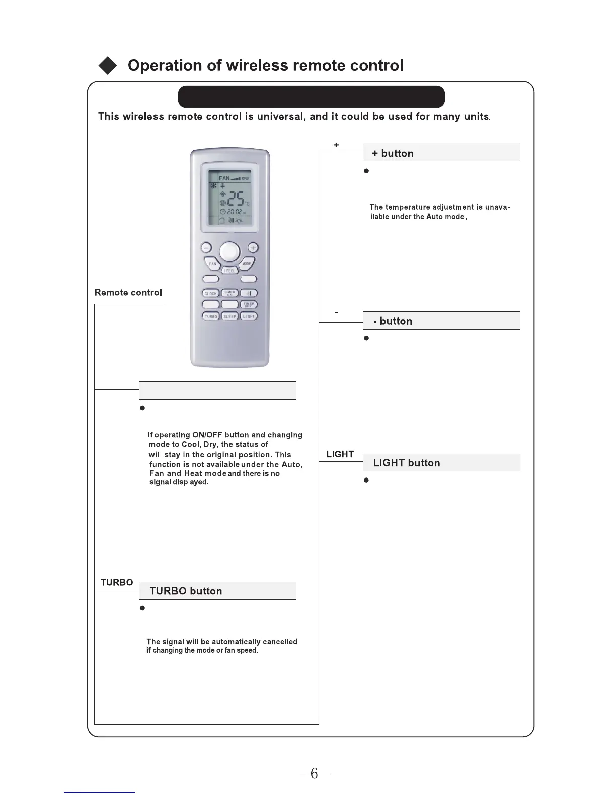 Name and function of wireless remote control