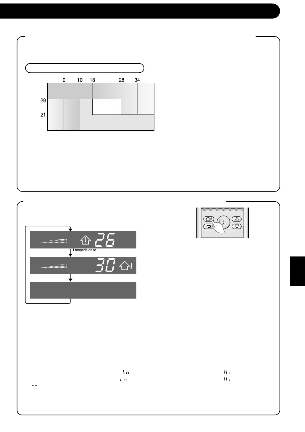 • Apenas a temperatura da sala pode ser apresentada durante 5 segundos enquanto a