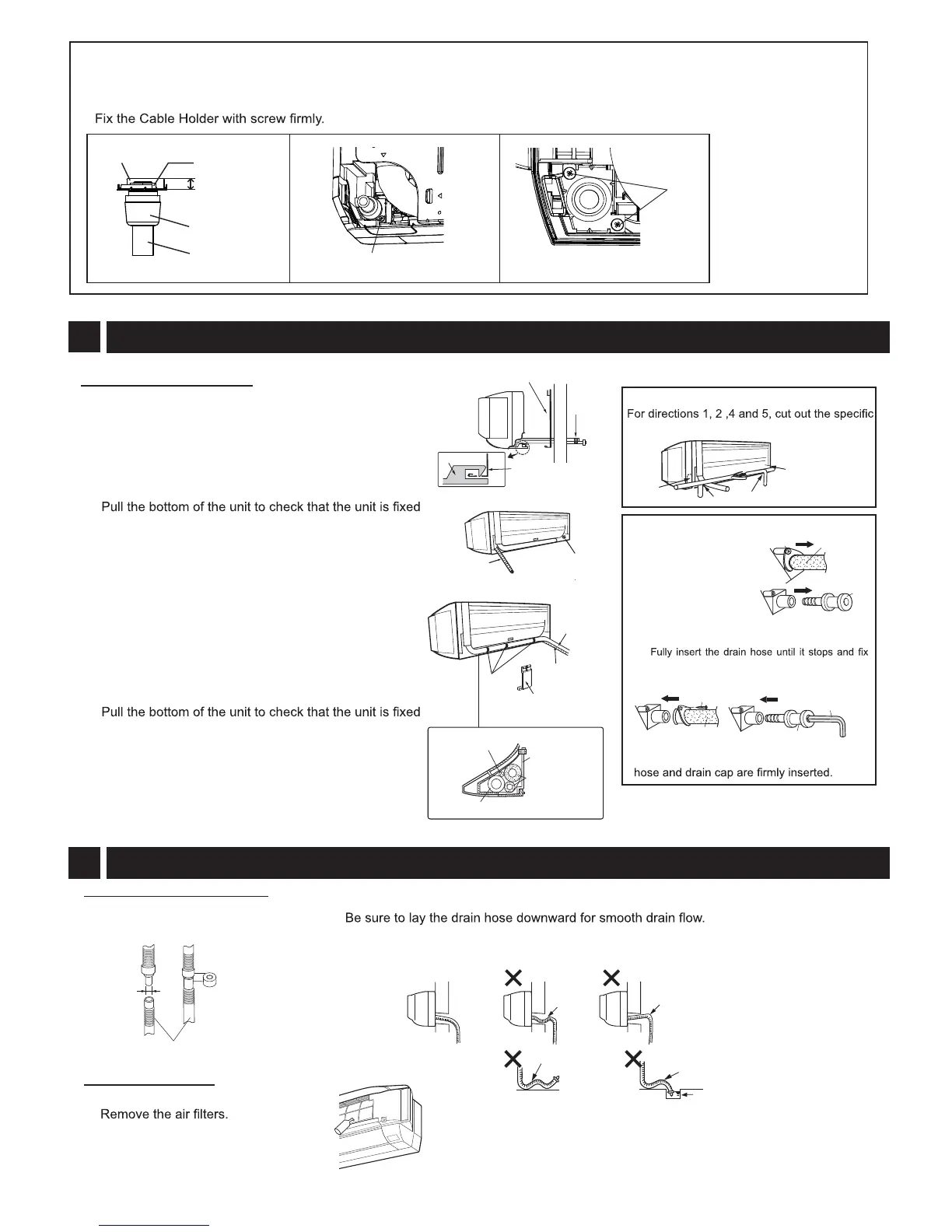(3) Pass the pipes, connecting cable and the drain hose