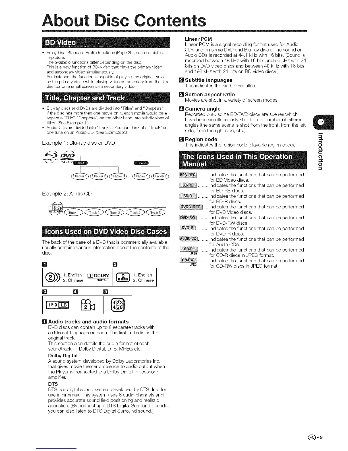 • Blu--ray discs and DVDs are divided into "Titles" and "Chapters".