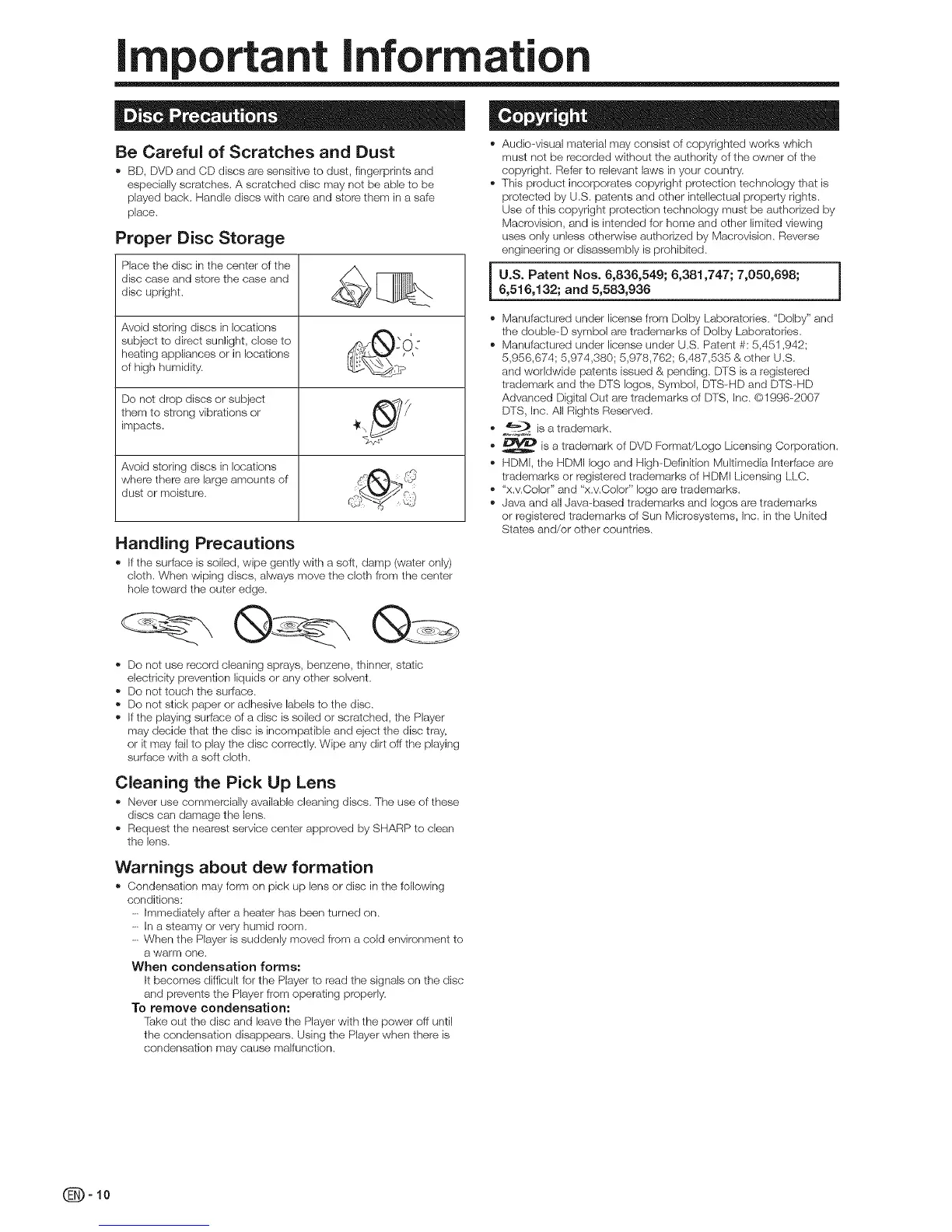 played back. Handle discs with care and stere them in a safe