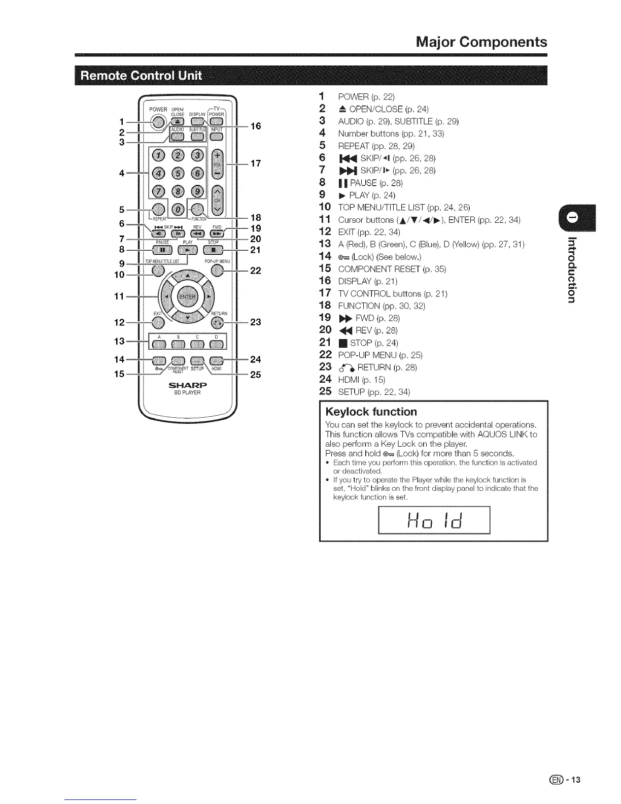 ,, If you try to operatethe Playerwhilethe keylockfunction is
