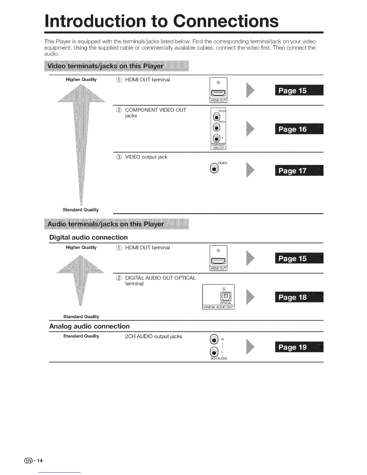 This Player isequipped with the terminals/jaokslistedbelow. Find the corresponding terminal/jackon your video