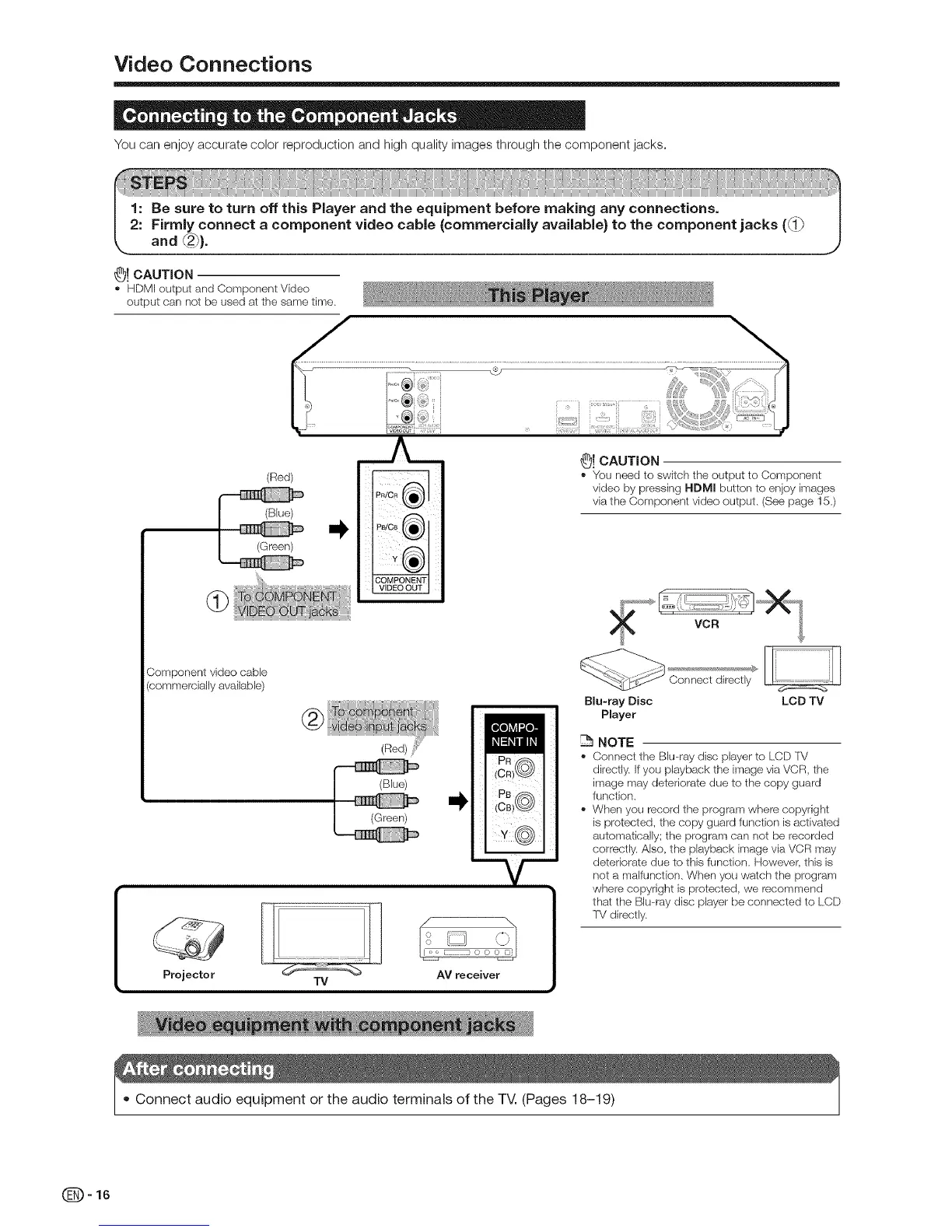 via the Component video output. (See page 15.)