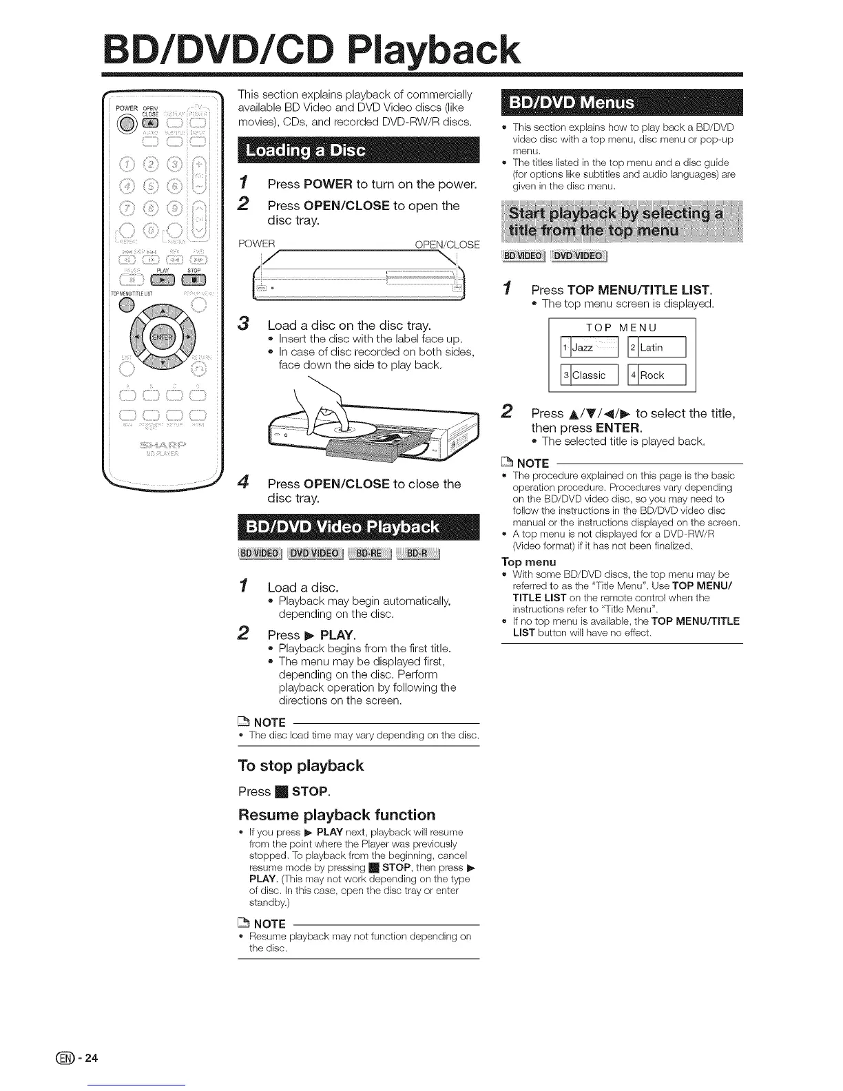 ,' This section explains how to play back a BD/DVD