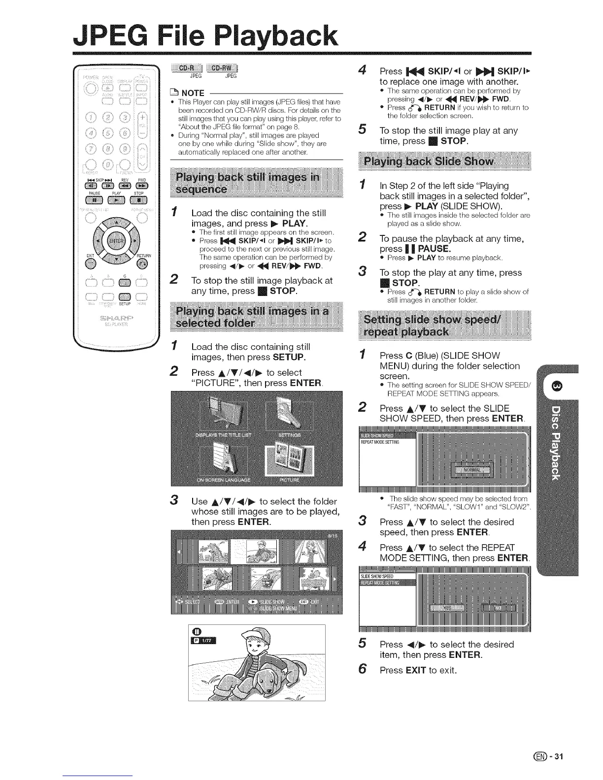 • This Player can play still images (JPEG flies) thai have