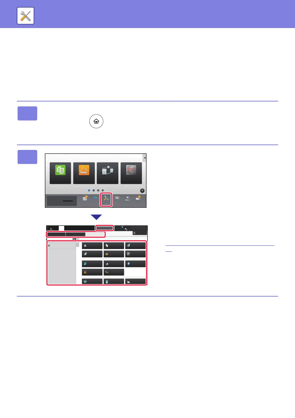 The date and time can be set, fax and scan destinations can be stored, document filing folders can be created, and