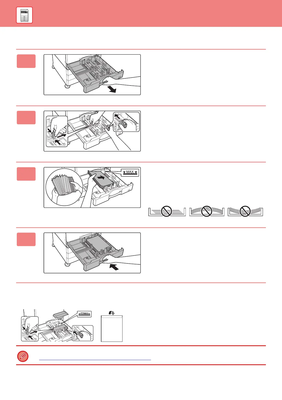 Load the paper with the copy and print side facing up. The diagram shows an example of printing on the front side.