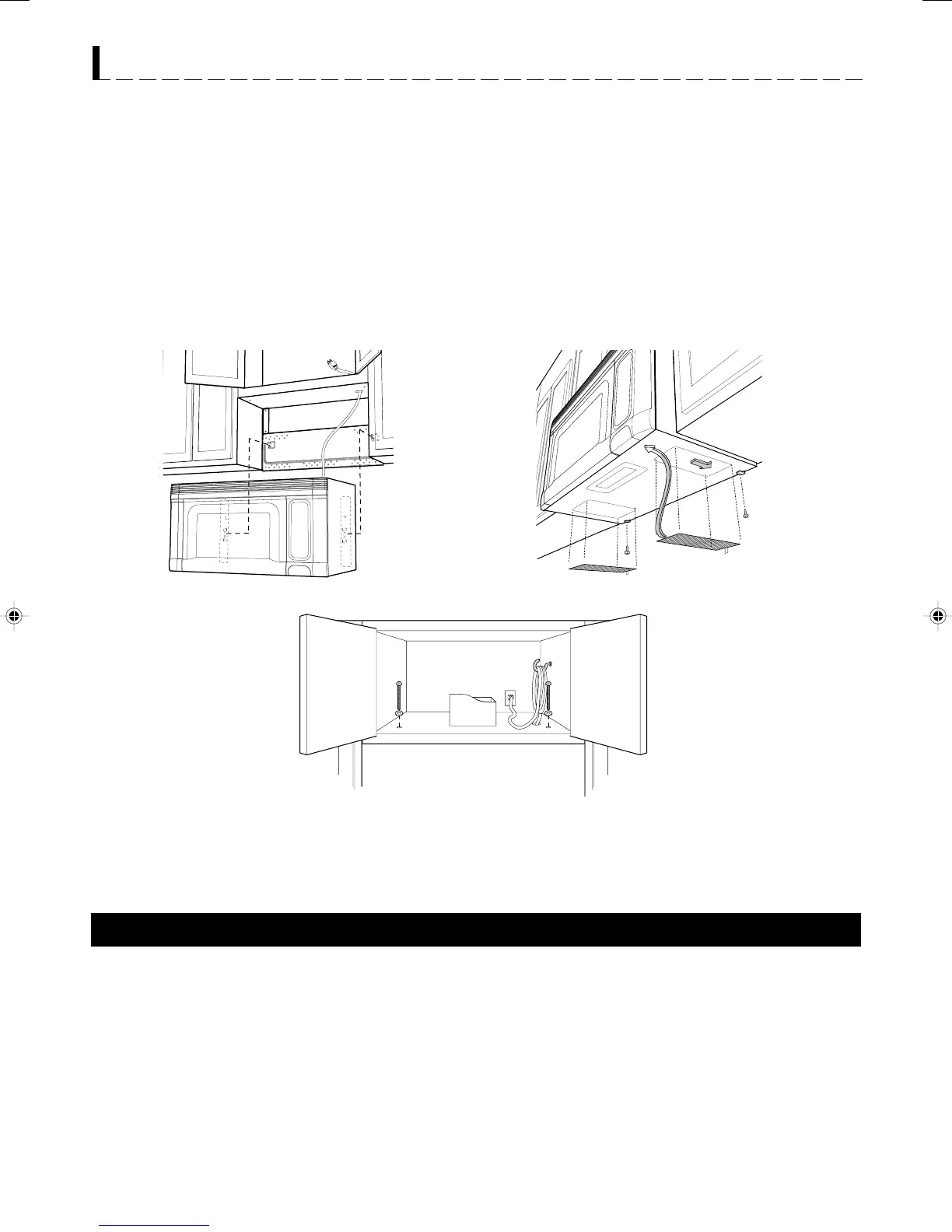 1. Thread the Power Supply Cord through the hole made in the bottom of the top cabinet. Install the oven by