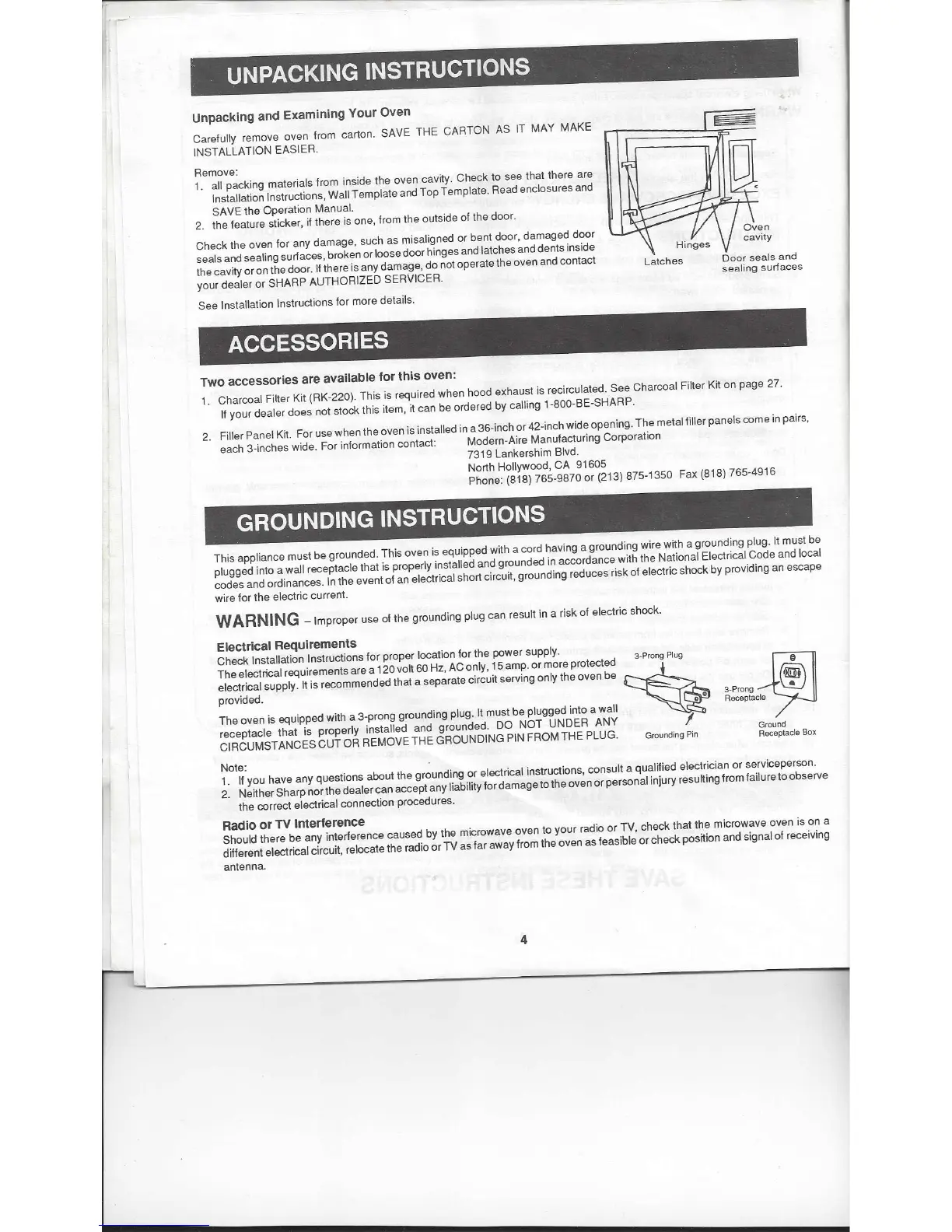 2. Nerther Sharp nor the dealer can accept any liability for damage to the oven or personal injury resuhing from failure to observe