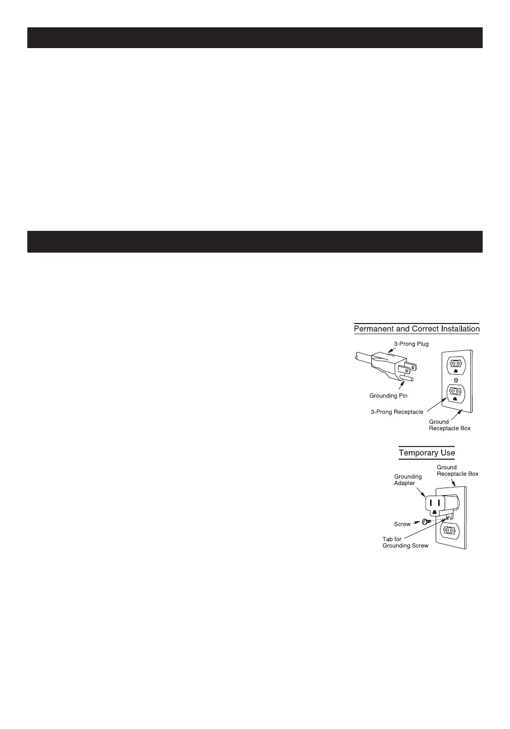 – Improper use of the grounding plug can result in a risk of electric shock.