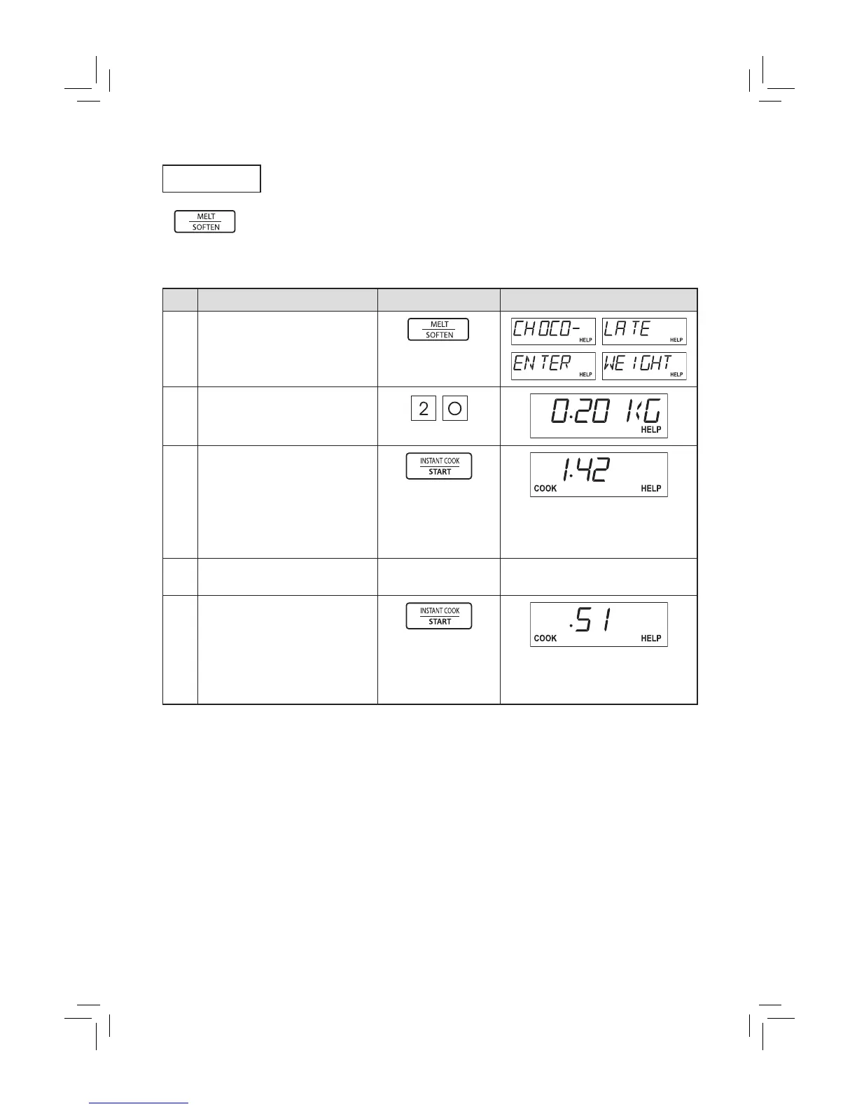 provided in the MELT/SOFTEN MENU GUIDE on page