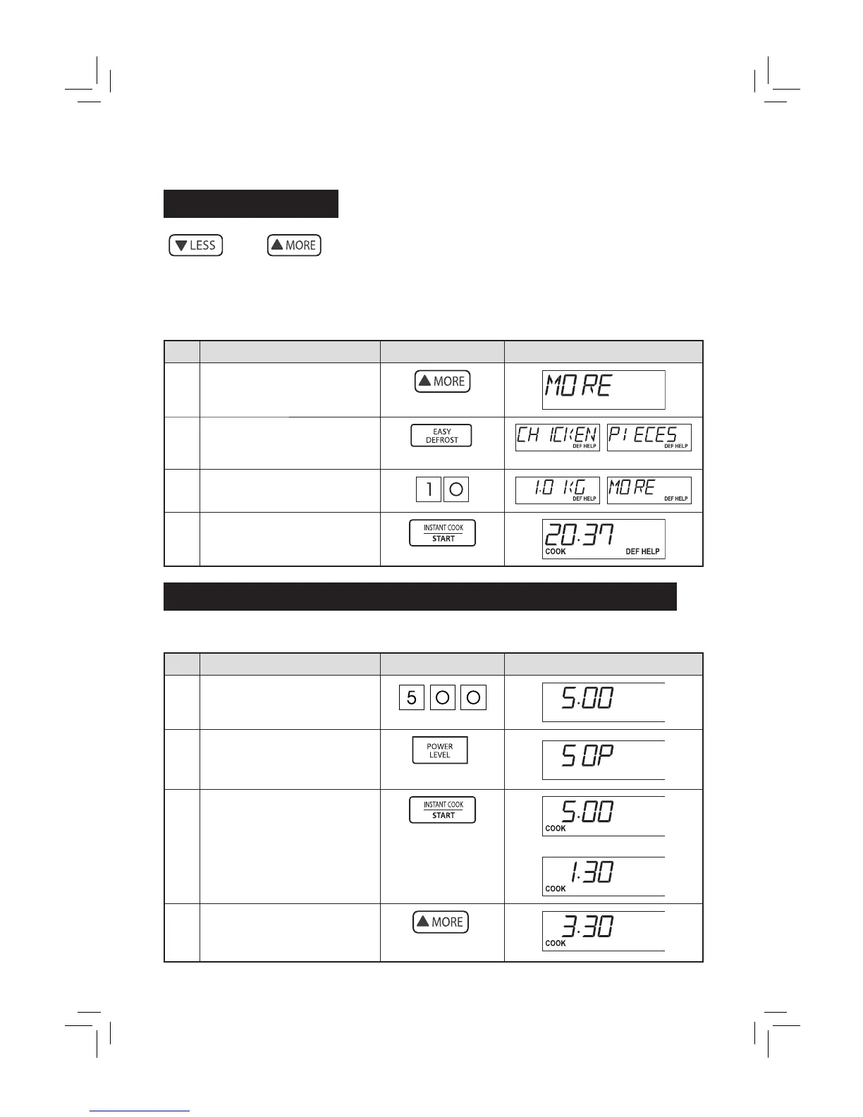Microwave time can be added or decreased during a manual cooking programme using the “MORE” or “LESS” pads.