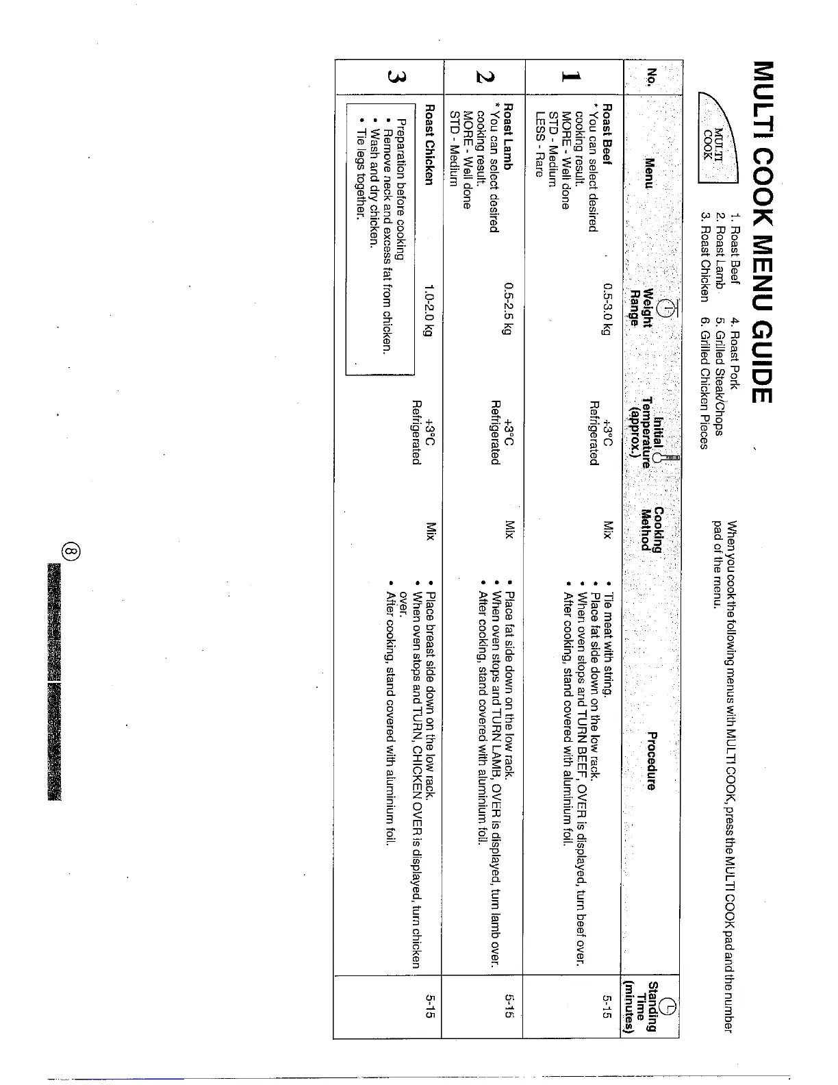 Sharp Carousel R-880B - FRESH VEGETABLE CHART