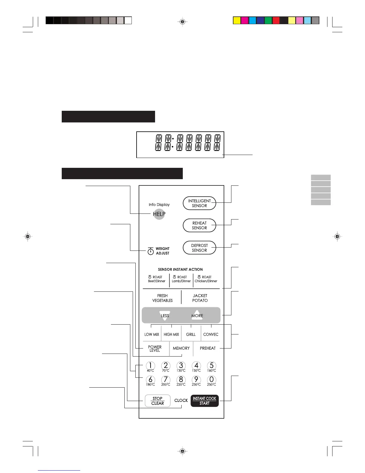The operation of the oven is controlled by pressing the appropriate pads arranged on the surface of the control panel.