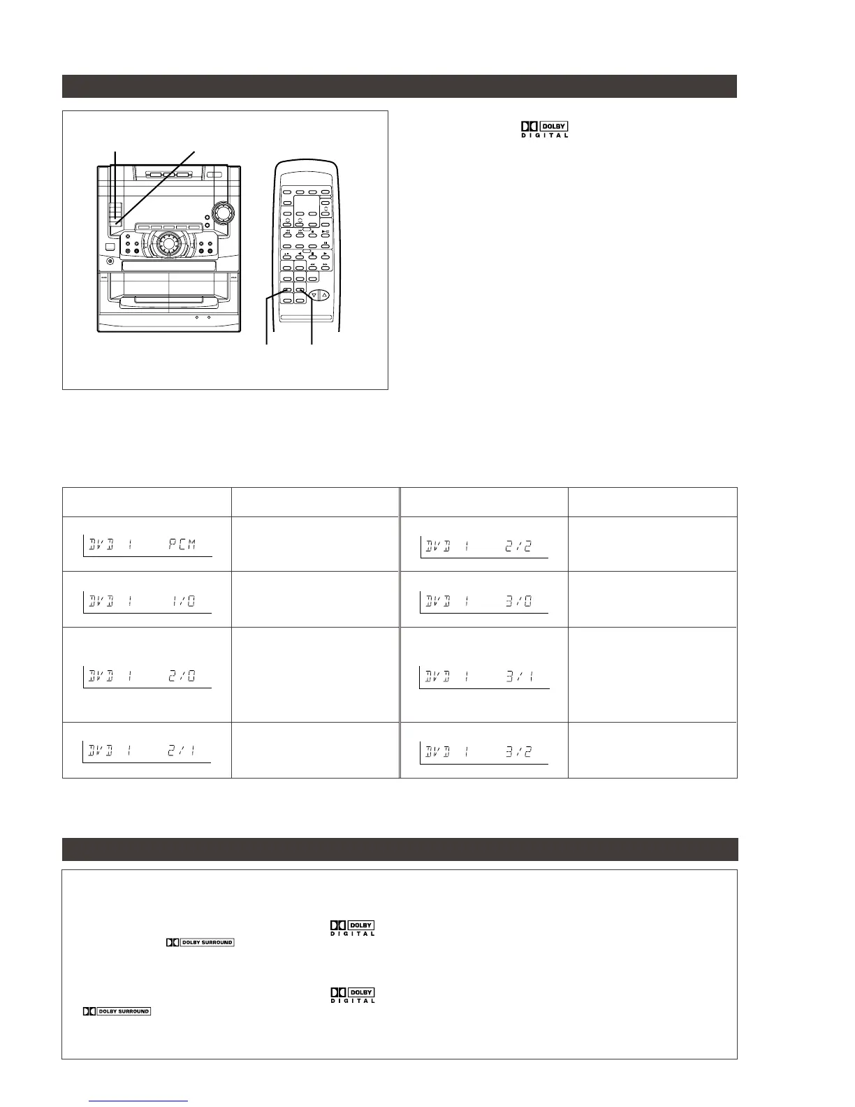 There are different types of Dolby digital signals. The type of Dolby digital signal being input into this unit can be checked