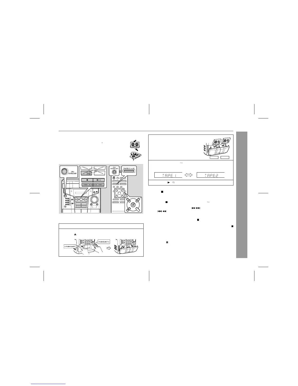 Listening to a cassette tape (TAPE 1 or TAPE 2)