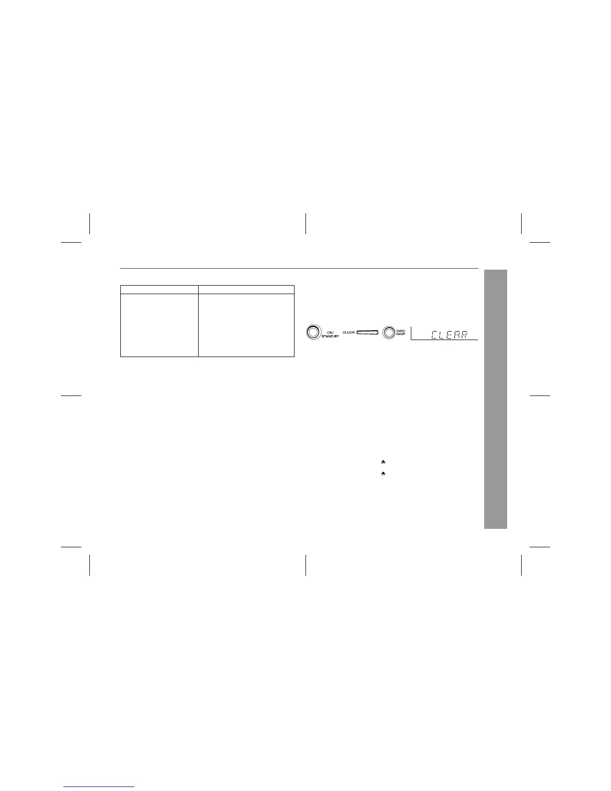 2 Whilst pressing down the CLOCK button and the DISC SKIP
