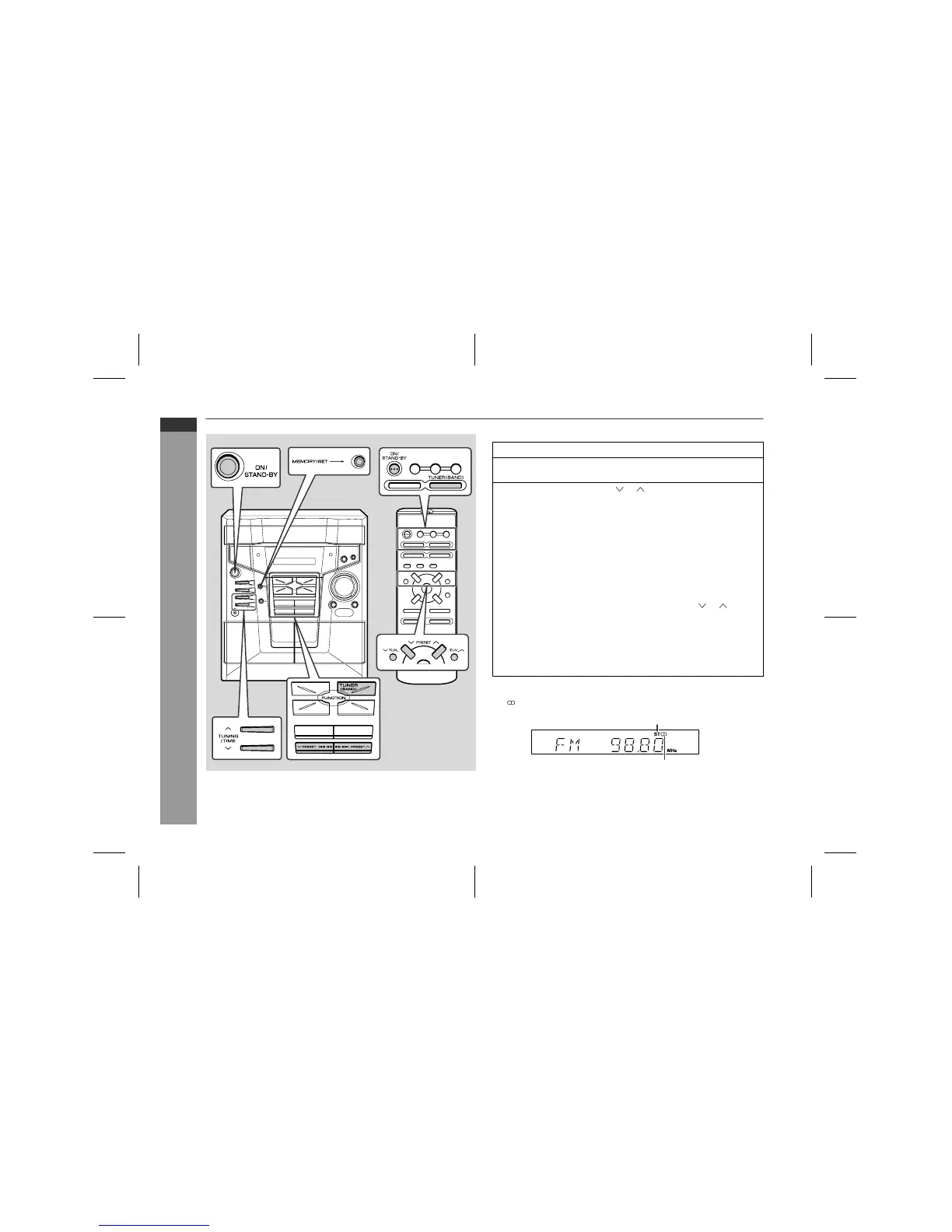 z If the FM reception is weak, press the TUNER (BAND) button to