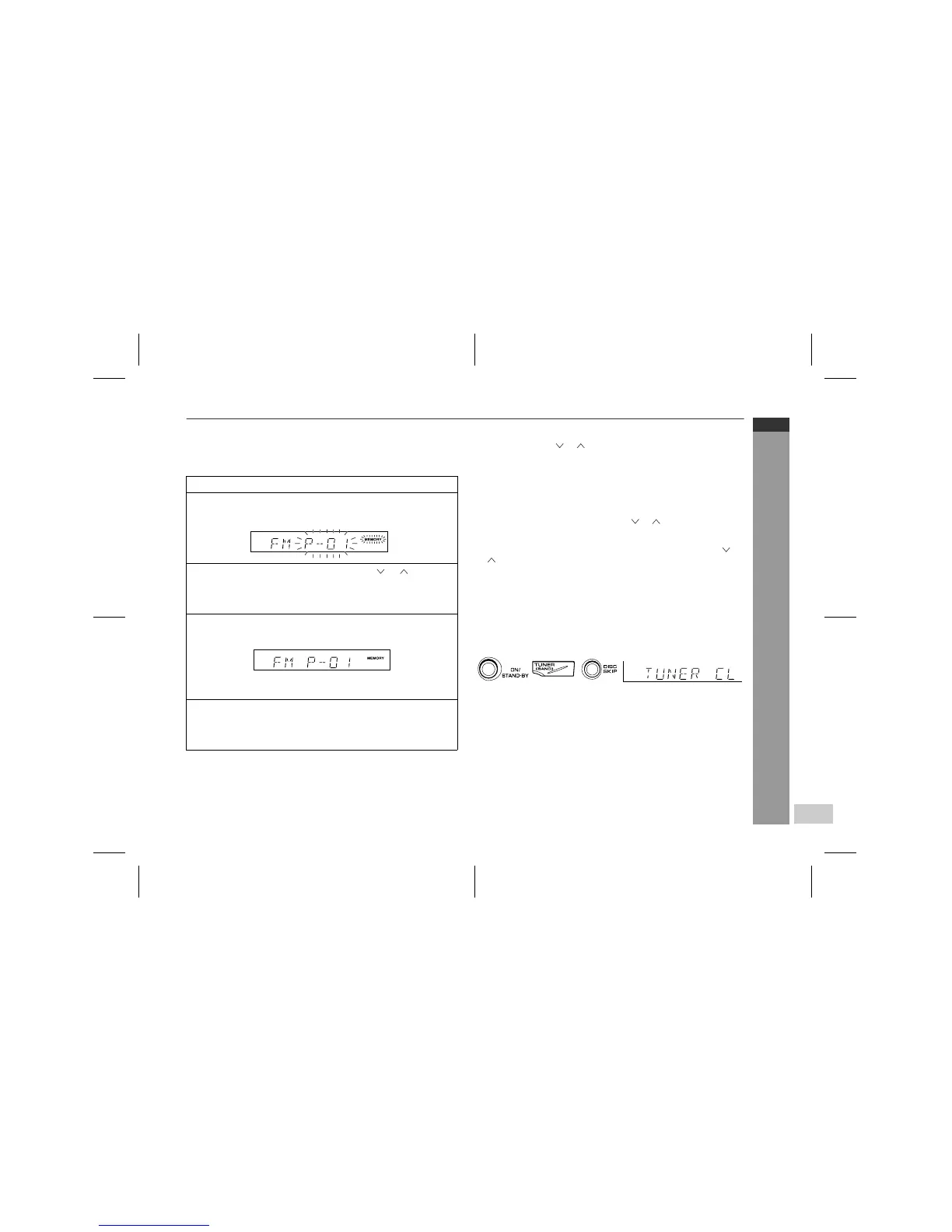 2 Press the MEMORY/SET button to enter the preset tuning