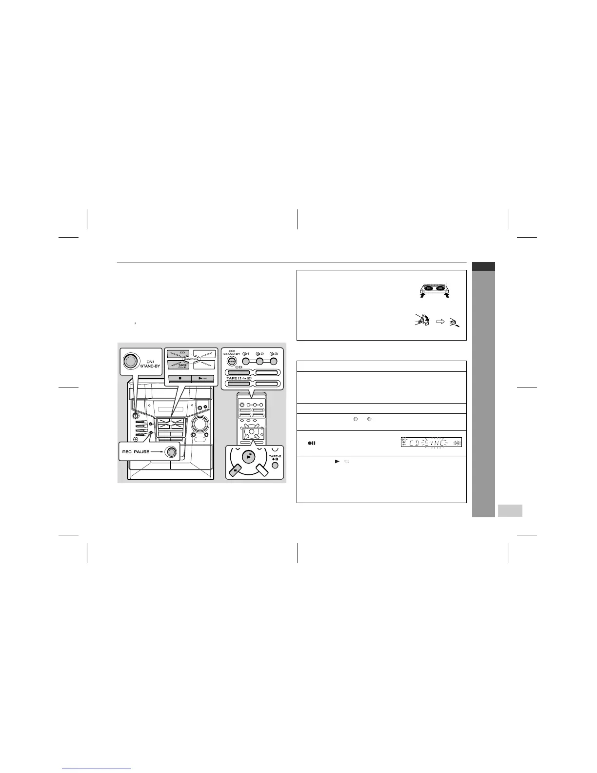 Recording can be operated in the TAPE 2 compartment only. The