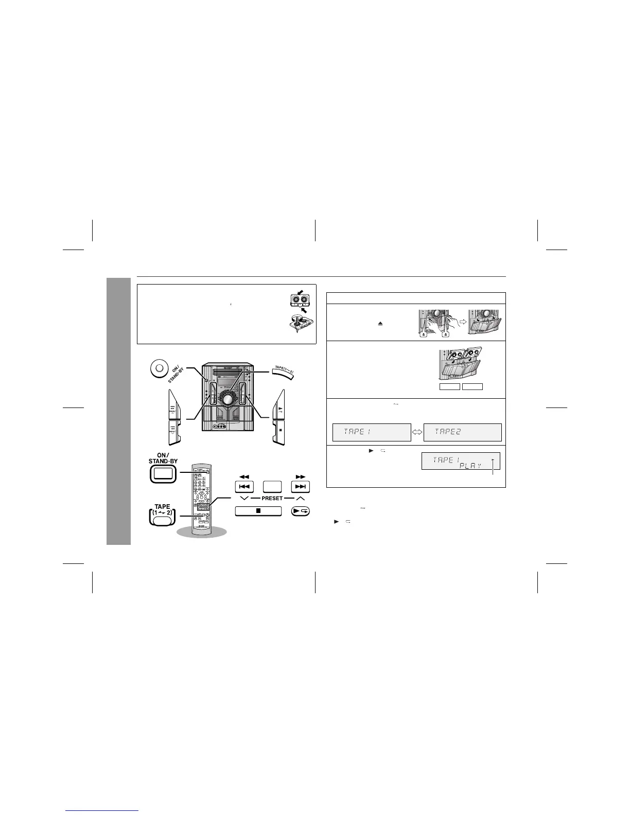 Listening to a cassette tape (TAPE 1 or TAPE 2)
