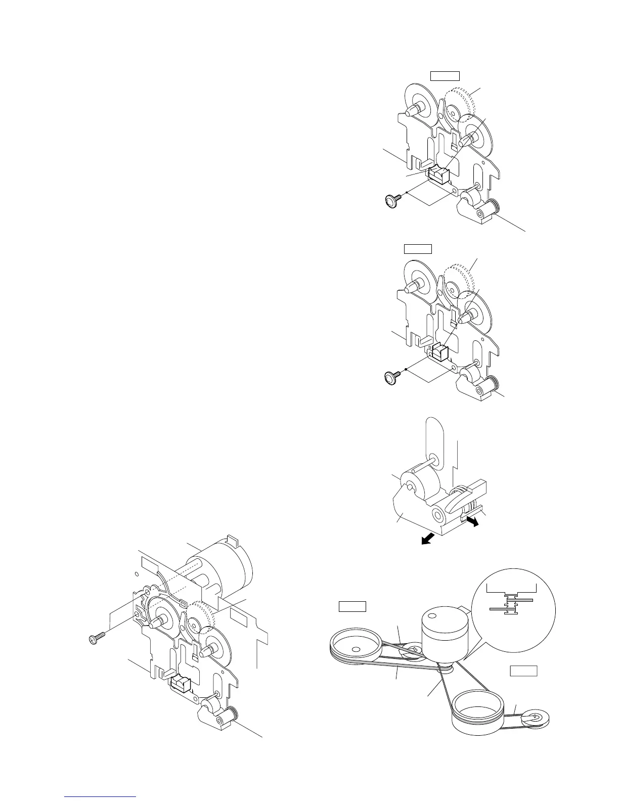 2. Remove the FF/REW belt (E2) x 1 pc.