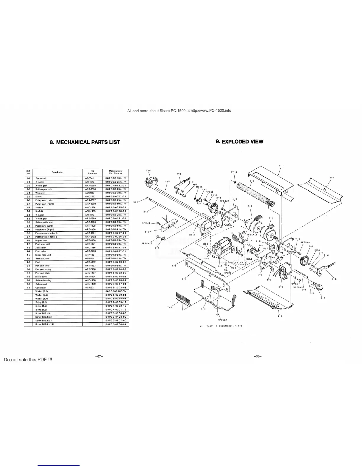 MECHANICAL PARTS LIST