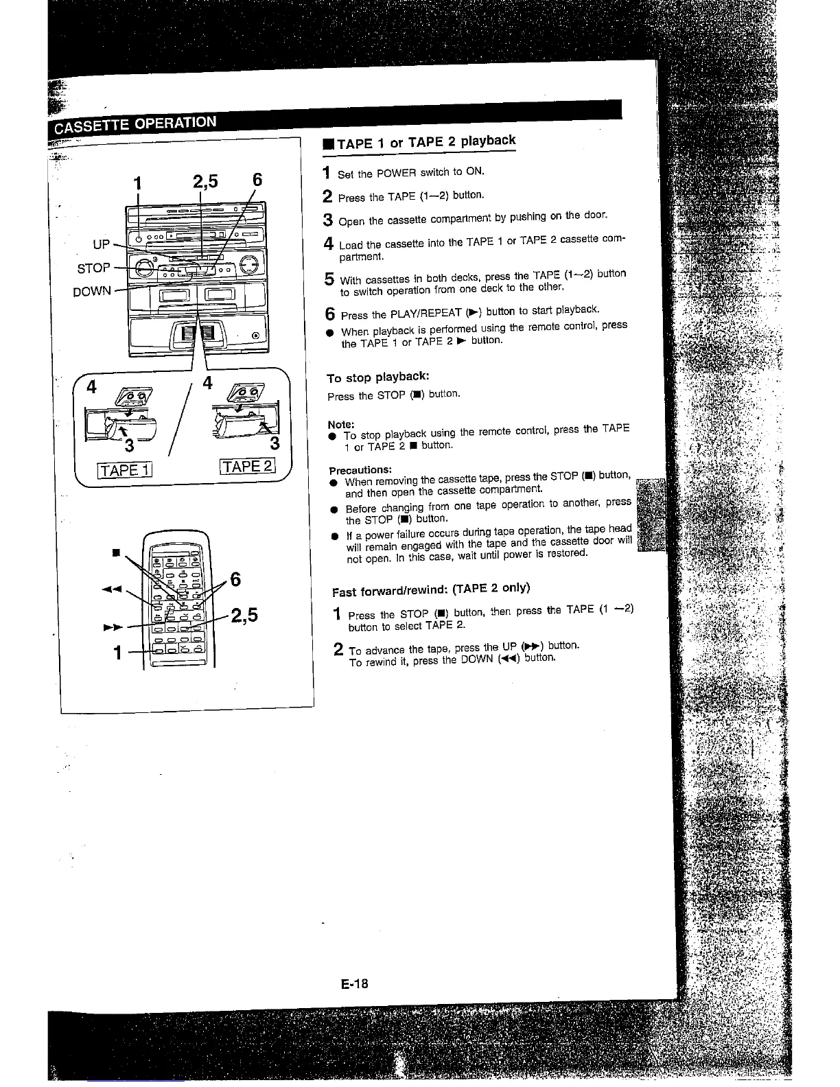 Sharp CMS-R600X - Cassette Operation; Tape 1 or Tape 2 Playback; Fast Forward;Rewind