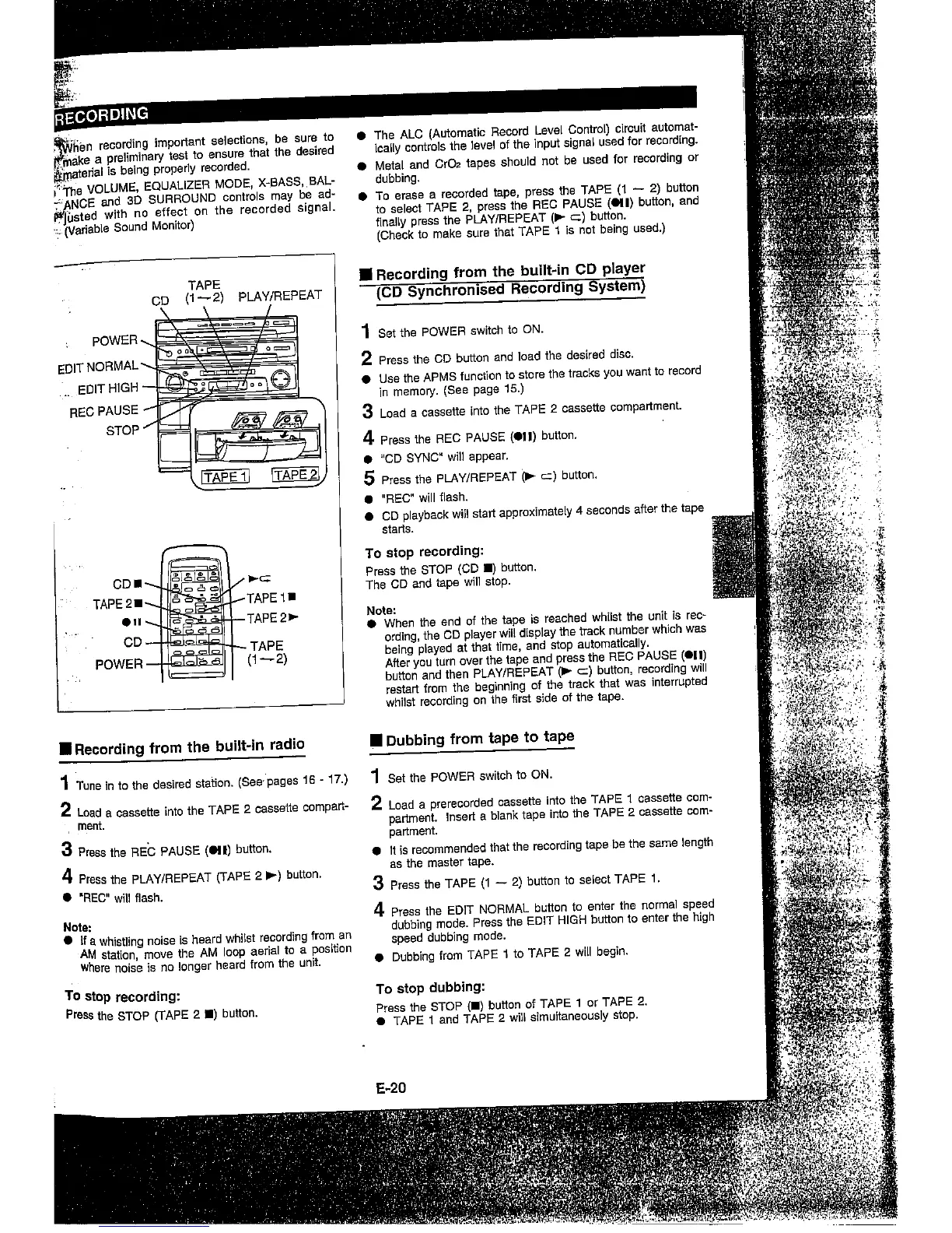 Sharp CMS-R600X - Recording from the Built-In CD Player; CD Synchronised Recording System; Recording from the Built-In Radio; Dubbing from Tape to Tape