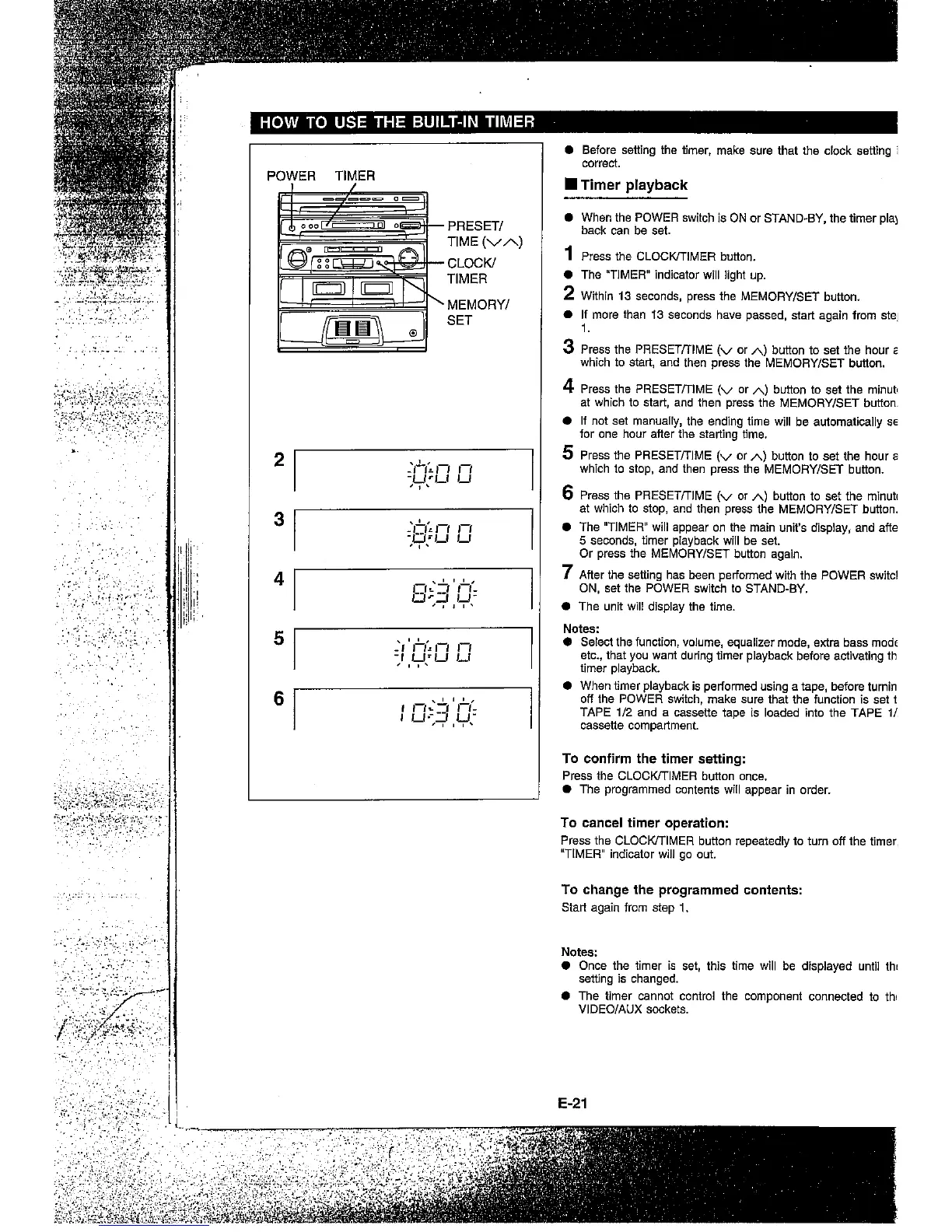 Sharp CMS-R600X - How to Use the Built-In Timer; Timer Playback; To Confirm the Timer Setting; To Cancel Timer Operation