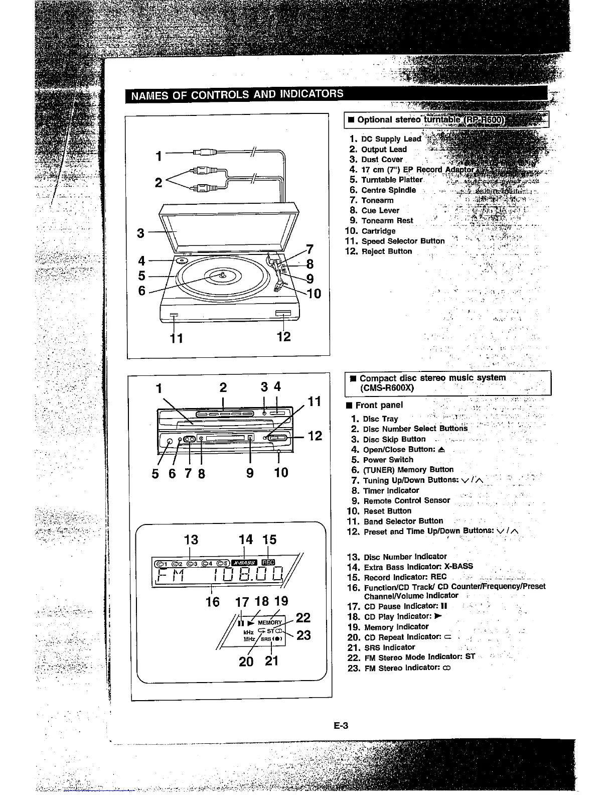 Sharp CMS-R600X - Controls and Indicators