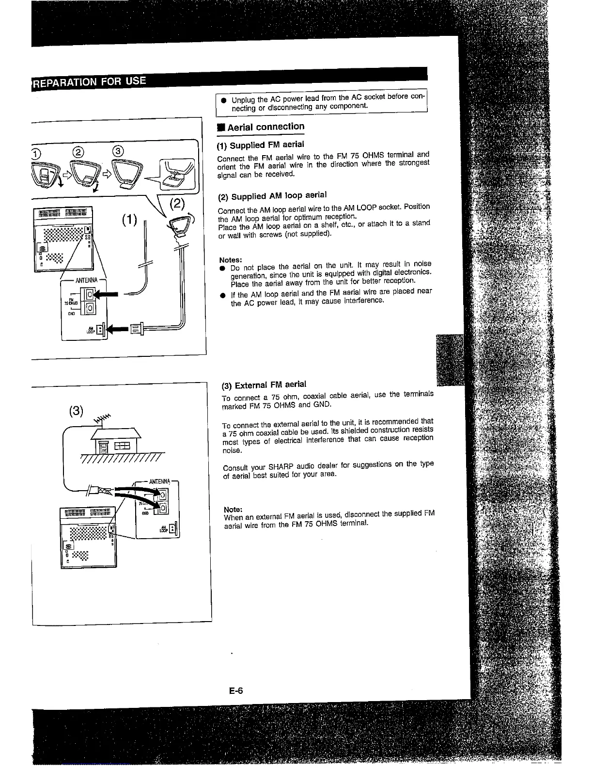Sharp CMS-R600X - Preparation for Use; Aerial Connection; Supplied FM;AM Aerial; External FM Aerial