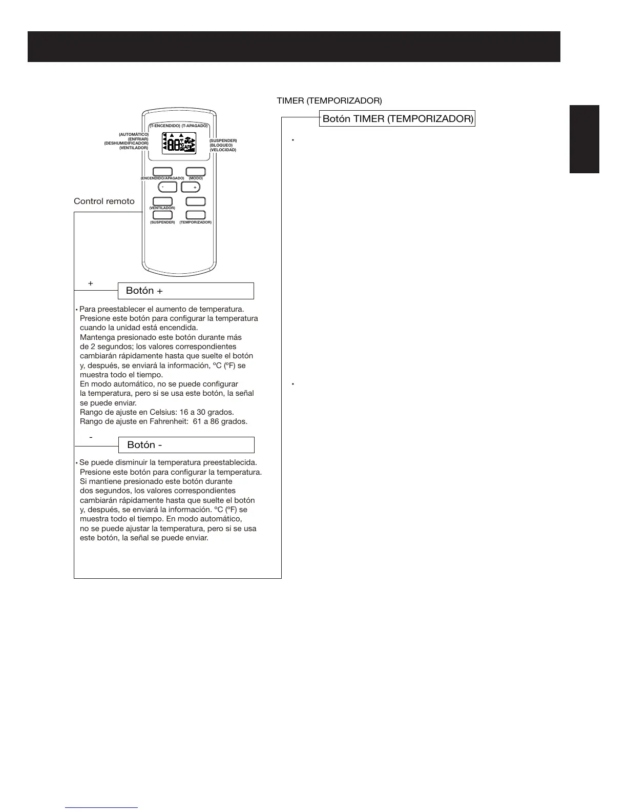 Rango de ajuste en Celsius: 16 a 30 grados.