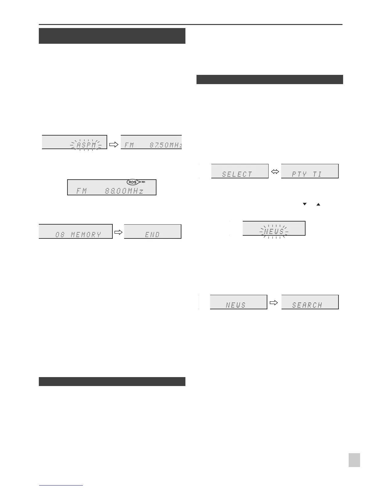 ● “No PS”, “No PTY” or “No RT” will flash for about 5