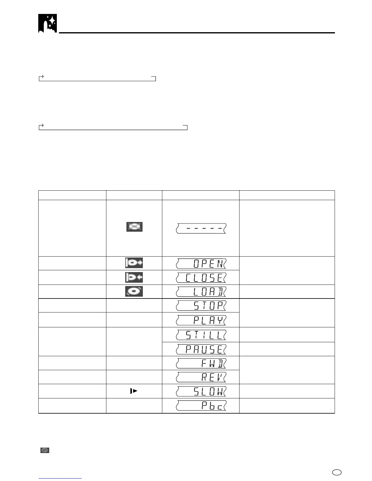 .... Displays the operation you perform such as “PLAY”, “REV”.